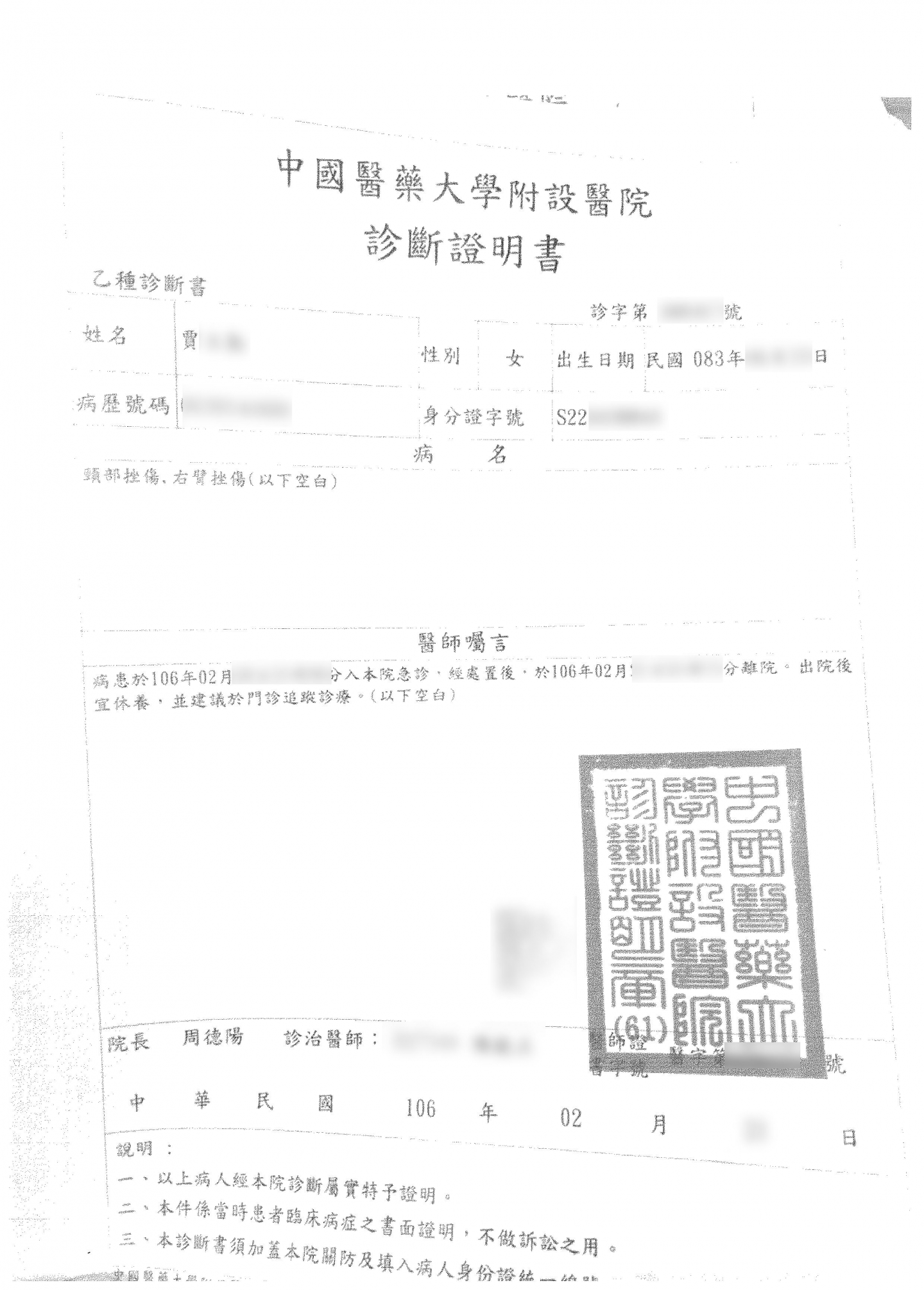 案件類型: 車禍案件。 發生時地: 106年2月 南投縣仁愛鄉。 面談過程: 賈小姐騎機車行經南投縣仁愛鄉山區彎道,遭對向駛來之自小客車碰撞,受有體傷及車損。賈小姐在跟對方協調的過程中,對方主張是我方越過道路中線才會致使車禍發生,不願負擔賠償責任。賈小姐不知如何應對,在面談過程中深感若有能夠信任的專業人士予以協助,事情處理起來會更順利,效果亦佳,因此決定將此事件交由本公司處理。 委任關鍵: 對造主張是我方當事人騎車越過道路中線才會致使車禍發生,不願意賠償。 處理結果: 協助當事人收集相關資料並申請賠償,我方當事人共計獲得賠償金額130,000元。 案件資料: 現場圖 診斷書